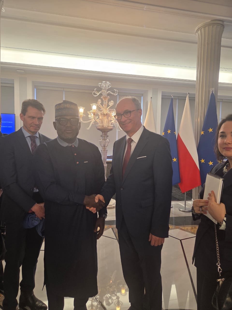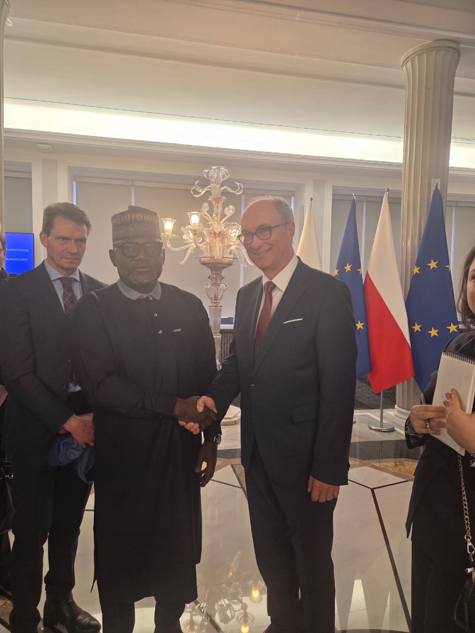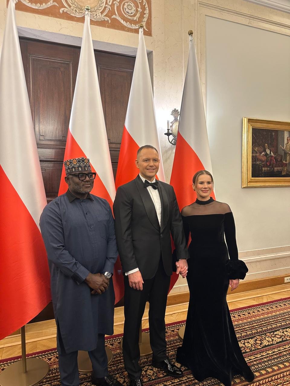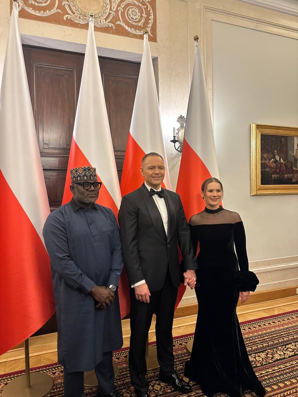 The Chargé d’ Affaires Embassy of the Federal Republic of Nigeria, Samuel T. Amuh with His Excellency, Karol Nawrocki, President of the Republic of Poland and First Lady at the Presidential Palace Warsaw, Poland