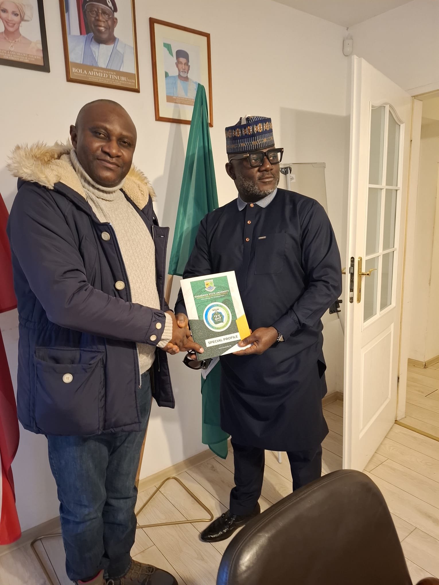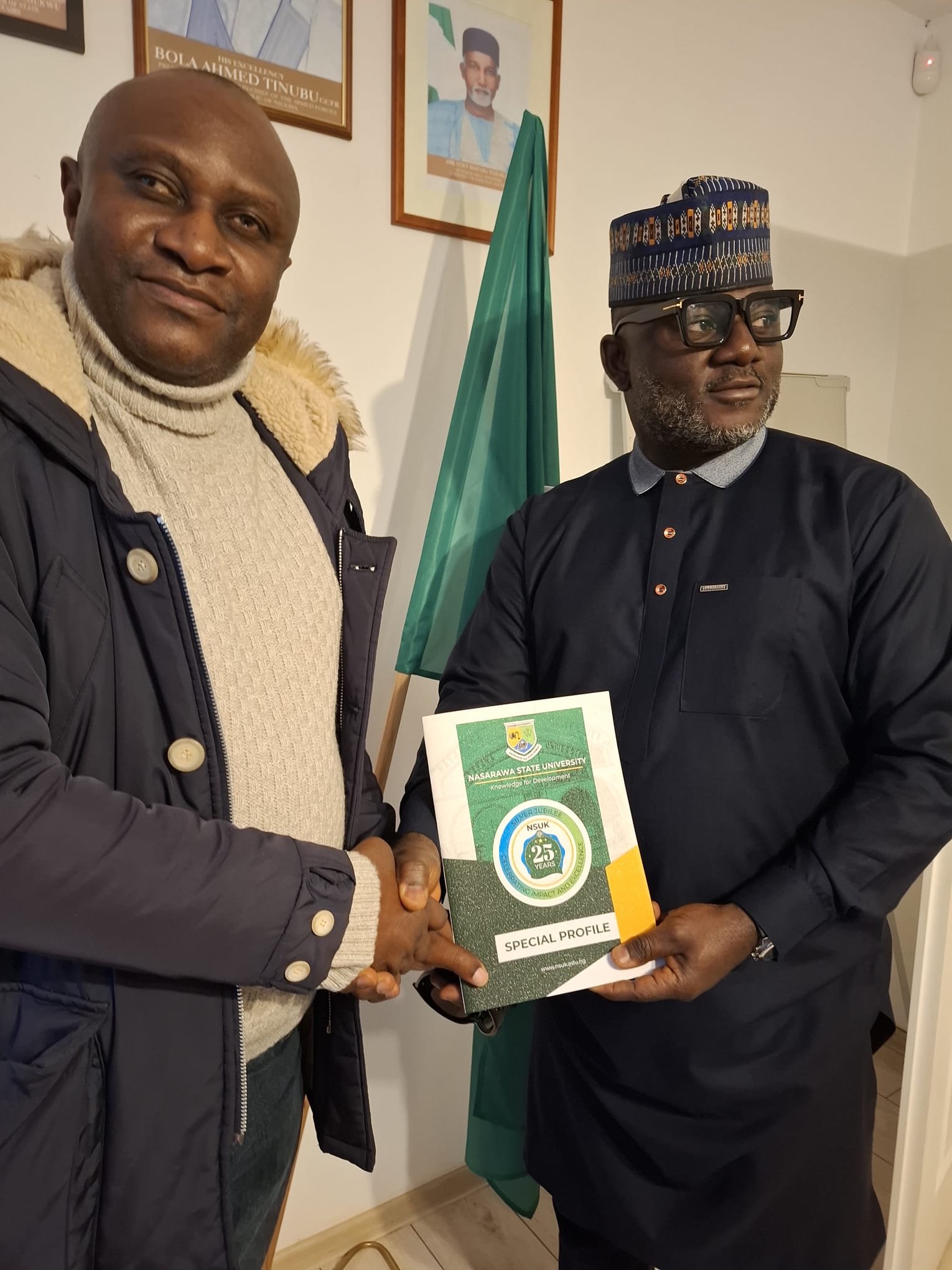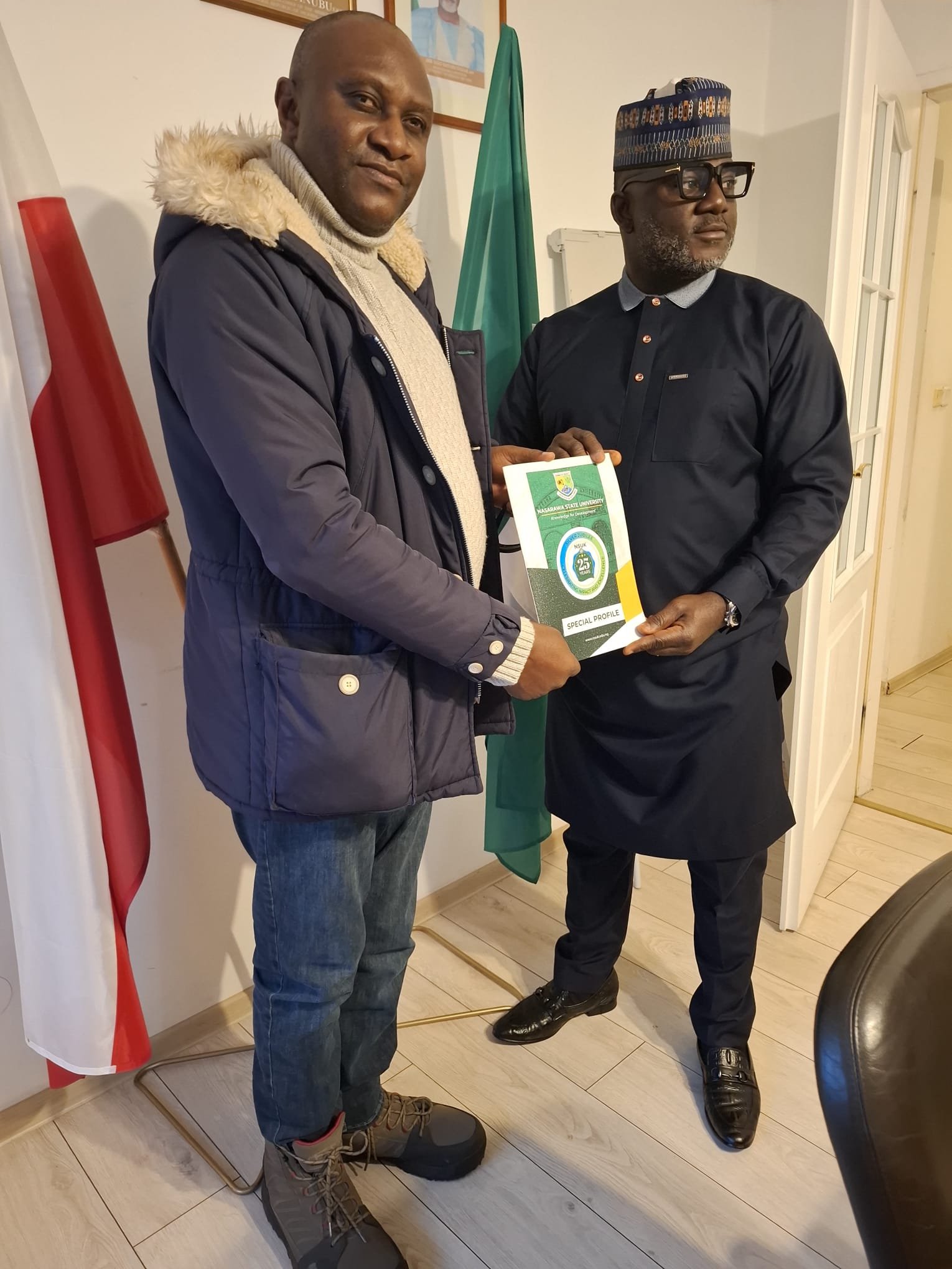 The Charge d’ Affaires of the Embassy of the Federal Republic of Nigeria, Warsaw Poland, Samuel T. Amuh with Professor K’tso Nghargbu, Deputy Vice Chancellor [Reserch Innovation & Linkages] Nasarawa State University Keffi, Nigeria.